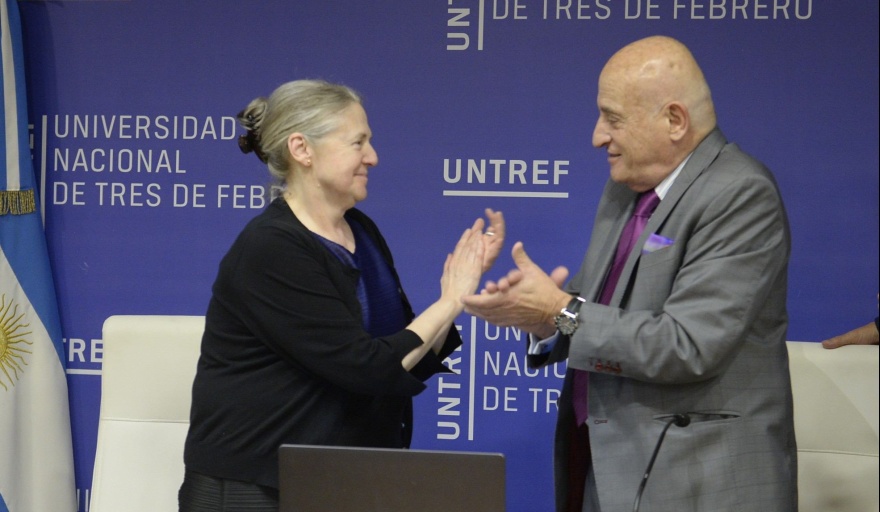 Por su parte, Estrella de Diego Otero agradeció el reconocimiento y destacó el vínculo generado con la UNTREF. “Recibir de una universidad nacional este reconocimiento permitirá fortalecer aún más los vínculos con esta institución, vínculos que se tradujeron en una colaboración que ya lleva más de 15 años junto con Diana y con Aníbal”, dijo la española. Luego ofreció una conferencia magistral titulada “Los afectos como una suerte de derecho a las lágrimas”. De Diego Otero, también, rememoró su participación en momentos claves de la historia reciente de la institución como la inauguración del MUNTREF Museo de la Inmigración y el nacimiento de BIENALSUR. “Todo ello dio muestras de un funcionamiento dinámico de la Universidad. Algo que no es común”, manifestó. A modo de cierre, destacó su conexión con Buenos Aires, ciudad que conoce hace 30 años. “En ningún lugar como en esta ciudad disfrutan tanto de mis historias. Gracias por este honor”, concluyó.