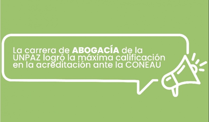 La Universidad Nacional de José C. Paz (UNPAZ) tiene el orgullo de comunicar a la comunidad universitaria que su carrera de Abogacía obtuvo la máxima calificación otorgada por la Comisión Nacional de Evaluación y Acreditación Universitaria (CONEAU) en el proceso de evaluación, logrando su acreditación por el período de 6 años.