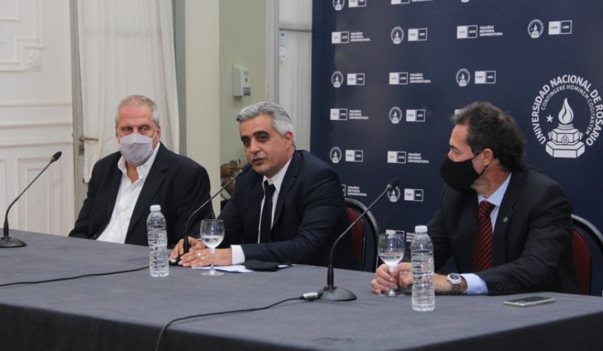 El acto de presentación de la Escuela de Oficios UNR estuvo encabezado por el rector de la UNR, Franco Bartolacci, y el secretario de Políticas Universitarias de la Nación, Jaime Perczyk. Además contó con las palabras de bienvenida del rector de la Facultad de Derecho, Hernán Botta, con la presencia del vicerrector Darío Masía, así como del responsable de Extensión y Territorio de la UNR, Santiago Dearma, área de gestión de la que depende esta iniciativa. Además participaron el equipo de gestión del Politécnico, el secretario general de APUR, Miguel Roldán y parte de la comisión directiva, funcionarios de la Facultad de Derecho y representantes estudiantiles, así como representantes de las distintas áreas de la UNR.