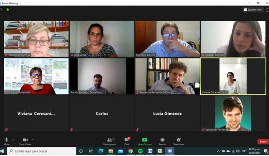 Participaron del encuentro la coordinadora de la Mesa, la Dra. Sol Quiroga, representante de la Universidad Nacional de Lanús (UNLa); la directora de Educación Ambiental, Viviana Ceresani; integrantes del equipo de Dirección, Virginia Arias y Sebastián Rondinoni; y autoridades de la Universidad Nacional de General Sarmiento (UNGS), Universidad Nacional del Centro (UniCen), Universidad Nacional de Lujan (UNLu), Universidad Nacional Arturo Jauretche (UNAJ), Universidad Nacional de Hurlingam (UNaHur), Universidad Nacional de Avellaneda (UNDAV) y la Universidad Nacional del Sur (UNS).
