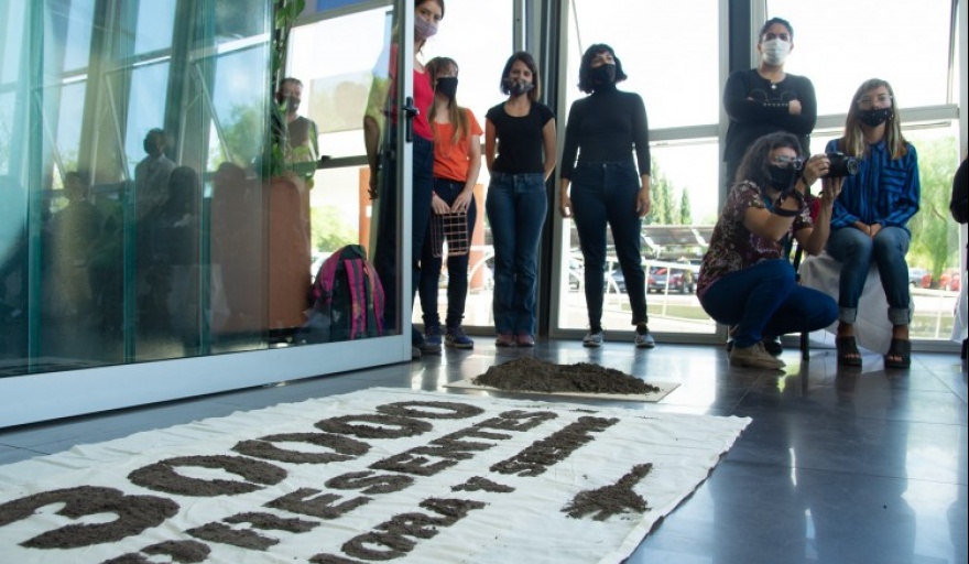 Al terminar el acto y en el contexto de esta celebración titulada “Sembramos memoria, cosechamos derechos” se leyeron los nombres de los desaparecidos de la Universidad Nacional de Cuyo durante la dictadura.