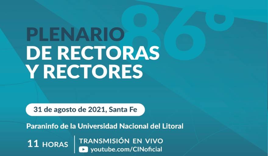 El 86° Plenario de Rectoras y Rectores del Consejo Interuniversitario Nacional (CIN) se llevará a cabo el 31 de agosto desde las 11 horas. La casa de estudios anfitriona será la Universidad Nacional del Litoral (UNL) y, a la vez, habrá autoridades superiores que participarán del encuentro a distancia. La presencialidad contará con los protocolos sanitarios correspondientes al contexto actual.