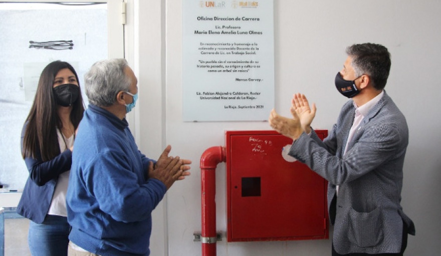 En el marco del Día del Trabajo Social Riojano, que se conmemora cada 25 de septiembre, la Universidad Nacional de La Rioja (UNLaR) realizó un sentido homenaje al docente Antonio Díaz y a la docente María Elena Luna Olmos, quienes fallecieron en contexto de pandemia Covid 19. La emotiva conmemoración contó con la presencia de familiares de los profesionales distinguidos e incluyó el descubrimiento de placas recordatorias en espacios académicos donde se desempeñaban como docentes.