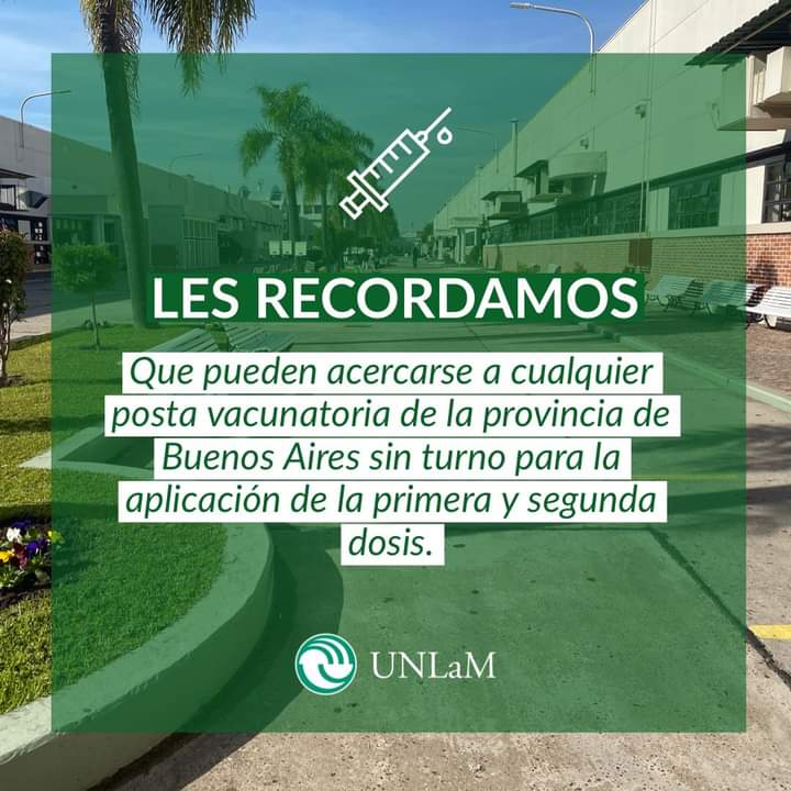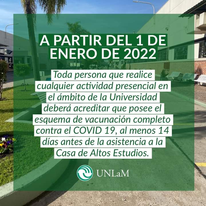 Debido a la situación sanitaria imperante, a partir del 1 de enero se requerirá, en consonancia con las medidas preventivas dictadas por los gobiernos nacional y provincial, el certificado de vacunación en formato impreso o digital en la Universidad Nacional de La Matanza.