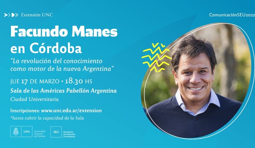 Invitado por la Secretaría de Extensión, el neurocientífico y diputado nacional Facundo Manes brindará el jueves 17 de marzo una charla gratuita en la Universidad Nacional de Córdoba (UNC).
