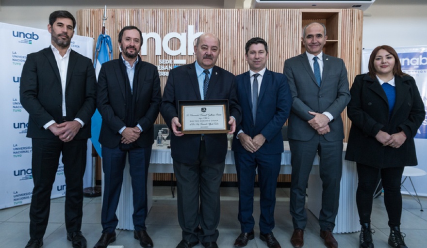 La distinción fue entregada en la sede Esteban Echeverría de la UNaB por el rector, Pablo Domenichini, en una ceremonia que contó con la presencia del actual presidente de la UNLP, Martín López Armengol, entre otras personalidades de la comunidad universitaria.