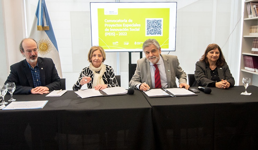 El Consejo Nacional de Investigaciones Científicas y Técnicas (CONICET), presidido por Ana Franchi y la Fundación para la Innovación y la Transferencia de la tecnología (INNOVAT), a cargo de Isabel Mac Donald, junto al ministro de ciencia y tecnología Daniel Filmus, presentaron la convocatoria a Proyectos Especiales de Innovación Social (PEIS), a otorgarse durante el período 2022, con un subsidio de hasta 8 millones de pesos ($8.000.000.).