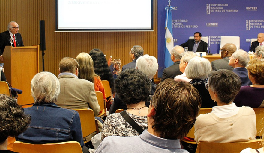 En el acto hablaron, también, José Alejandro Tasat, coordinador del Programa Pensamiento Americano-UNTREF, y Alejandro Iglesias Rossi, Director de la Orquesta de Instrumentos Autóctonos y Nuevas Tecnologías de la UNTREF. En su discurso, Tasat recorrió los puntos sobresalientes del pensamiento de Boaventura, mientras que Iglesias Rossi destacó su idea de recuperar la sabiduría antigua para ampliar nuestro presente como uno de los puntos de contacto entre sus desarrollos teóricos y el trabajo que se lleva adelante en la orquesta.