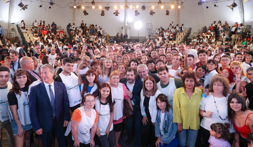 Al término del acto, el presidente compartió una actividad con alumnos y alumnas que se inscribieron en una nueva edición del programa municipal Volvé a la Escuela, por el cual más de 20 mil personas completaron sus estudios primarios o secundarios.