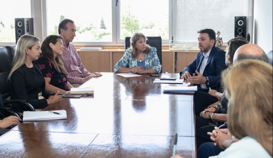 La rectora de la Universidad Nacional de Cuyo, Esther Sánchez, recibió al intendente de la Municipalidad de Godoy Cruz, Tadeo García Zalazar, y a parte de su equipo técnico en un encuentro que sirvió para acordar acciones concretas vinculadas con la sostenibilidad, tomando como modelo lo que avanzó esta comuna en la reducción de la huella de carbono. Participaron también el presidente del Polo TIC de Mendoza, Rafael Kemelmajer, y el presidente del Foro Diplomático en Mendoza, Carlos Abihaggle.