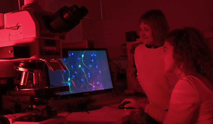 Los experimentos que arrojan estos notables resultados fueron realizados utilizando células madre aisladas del cerebro de ratones de trece días de gestación. “Partimos de embriones de ratón que miden más o menos un centímetro”, detalla Delgado, primera autora del trabajo, y agrega: “De allí obtenemos las células madre para realizar los experimentos, es un trabajo de mucha precisión y muchas horas en el microscopio de fluorescencia, que son las más lindas”.