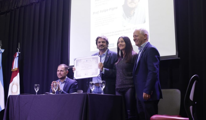 La Universidad Nacional de Villa María (UNVM) designó a Felipe Pigna como Profesor Honorario en reconocimiento a su trayectoria como historiador, escritor y divulgador. La máxima distinción, que se otorga a personalidades del campo de la ciencia y el arte, fue aprobada por el Consejo Superior y se entregó en la previa del cierre de las IV Jornadas de Historia y Memoria Local y Regional donde disertó sobre los “40 años de Democracia: investigar, observar y narrar la historia desde los entornos locales y regionales”.