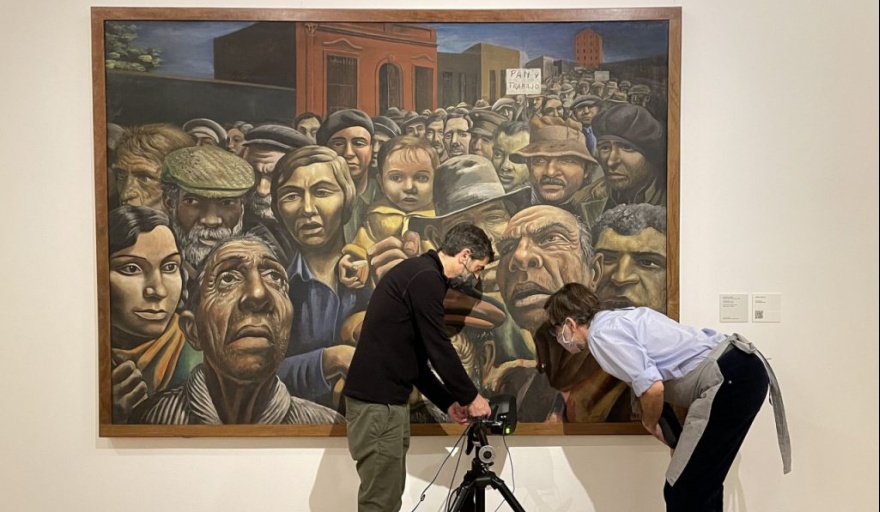 Según Laura Malosetti Costa, historiadora de arte y decana de nuestra Escuela de Arte y Patrimonio (EAyP), Antonio Berni (1905-1981) fue el artista argentino “más importante de nuestro siglo XX”. En un análisis sin precedentes y a cuarenta años de su fallecimiento, especialistas e investigadorxs de la EAyP analizaron junto con un equipo del Museo de Arte Latinoamericano de Buenos Aires (MALBA) una de sus obras emblemáticas, Manifestación, un cuadro monumental realizado por el muralista rosarino en 1934 y adquirido en 1991 por el empresario Eduardo Costantini, que la incluyó en 2001 en la colección permanente del Museo.