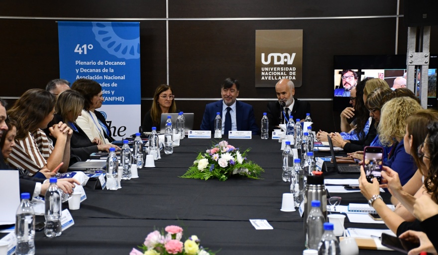 La Universidad Nacional de Avellaneda (UNDAV) es sede del 41° Plenario de Decanos y Decanas de la Asociación Nacional de Facultades de Humanidades y Educación (ANFHE). El encuentro, que cuenta con la participación de autoridades, decanos/as y representantes de universidades públicas de todo el país, se desarrolla durante este lunes 2 y martes 3 de diciembre en la Sede España de la UNDAV.