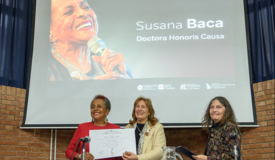 Por pedido de la Facultad de Artes y Diseño, el Consejo Superior de la Universidad Nacional de Cuyo ( Res.  294/2025) decidió otorgar el título de Doctora Honoris Causa, con mención especial al mérito político-social a la artista peruana Susana Baca.