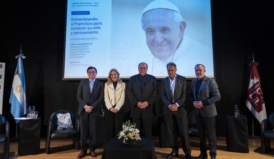 En un Aula Magna colmada de estudiantes, dirigentes sindicales, autoridades eclesiásticas y políticas, la Universidad Nacional de Lanús (UNLa) fue escenario el jueves 10 de julio de una emotiva y profunda reflexión sobre la figura de Jorge Bergoglio. Bajo el título “Entrevistando a Francisco para conocer su vida y pensamiento”, cinco reconocidos periodistas que tuvieron la oportunidad de entrevistarlo durante su pontificado —Bernarda Llorente, Gustavo Sylvestre, Jorge Fontevecchia, Elisabetta Piqué y Daniel Hadad— compartieron sus experiencias y miradas sobre el Papa argentino.
