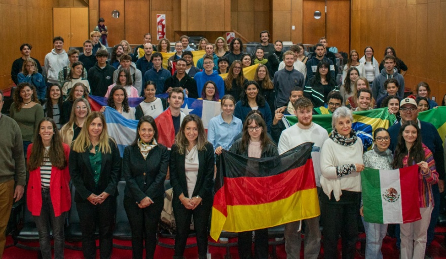 El auditorio nº 5 de la Facultad de Ciencias Económicas de la Universidad Nacional de Cuyo (UNCUYO) se colmó de banderas de diferentes partes del mundo en la bienvenida de los 101 estudiantes de intercambio que cursarán en las diferentes unidades académicas de la casa de estudios.