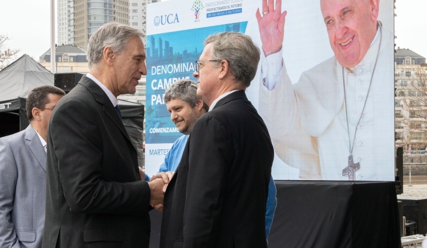 El 16 de septiembre se llevó a cabo el acto de denominación del Campus Papa Francisco, presidido por el gran canciller y arzobispo de Buenos Aires, Mons. Jorge Ignacio García Cuerva, y el rector de la UCA Dr. Miguel Ángel Schiavone, con la presencia del nuncio apostólico Mirosław Adamczyk.