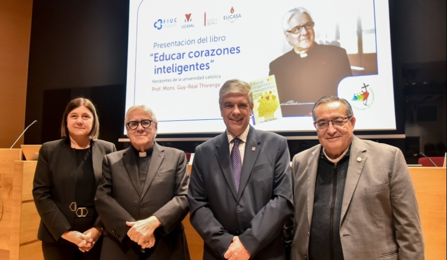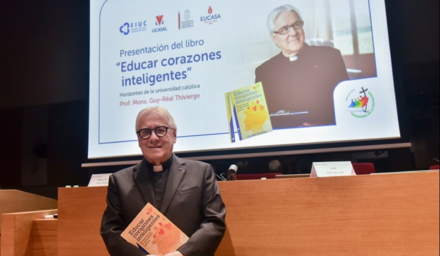 El rector también subrayó el significado que el título del libro tiene para la comunidad universitaria: “Invitamos a Monseñor Guy-Réal Thivierge a disertar en el Aula Magna UCASAL, y allí escuché por primera vez la frase ‘la misión de una universidad católica es educar corazones inteligentes’. En tres palabras definió la identidad y la misión de las universidades católicas. Desde entonces, ese mensaje quedó grabado en nuestra identidad institucional”.