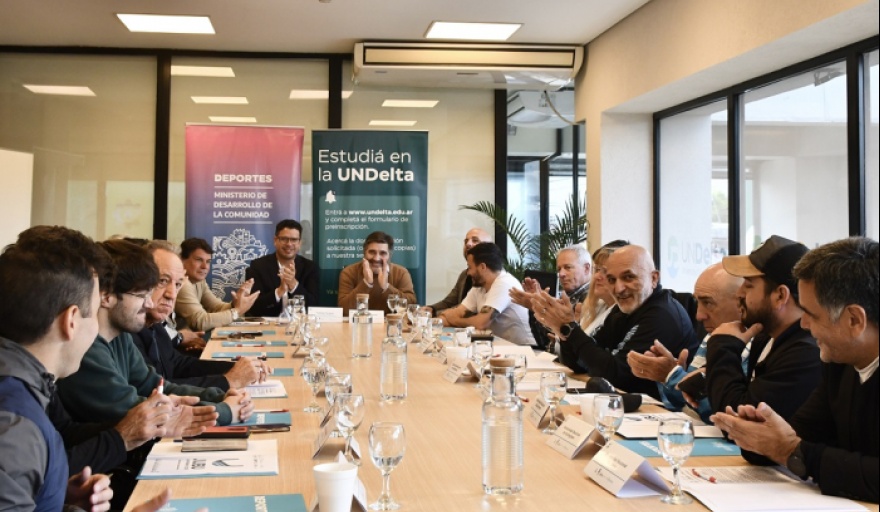 Cardozo encabezó el encuentro en el Consejo Superior de la Universidad Nacional del Delta (UNDelta) junto al secretario de Deportes de San Fernando, Carlos Traverso; el presidente de la Federación del Deporte Universitario Argentino (FeDUA), Emiliano Ojea; y el director de los Juegos Universitarios Bonaerenses Urbanos (JUBU), Emiliano Gordin. También estuvieron presentes autoridades de las federaciones de deportes urbanos y representantes de las áreas deportivas de universidades del AMBA.