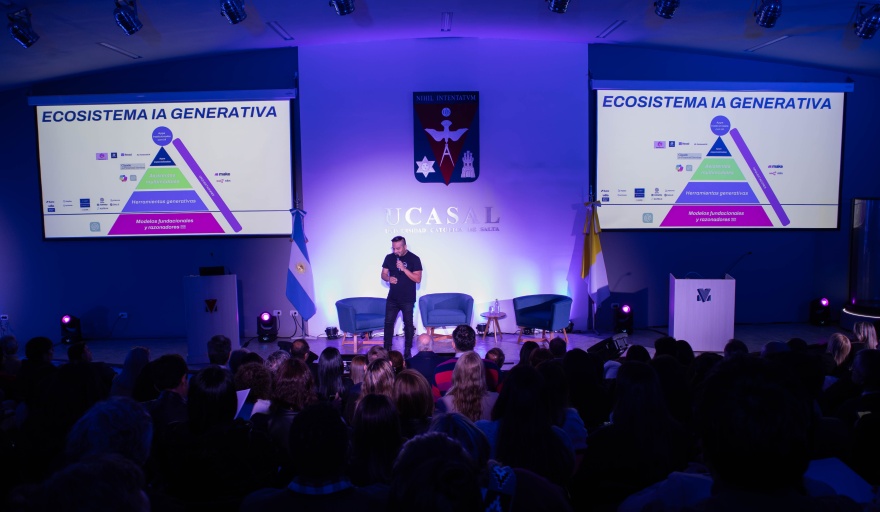 Esta vez, el foco estuvo puesto en la implementación de la inteligencia artificial. El ingeniero Fredi Vivas disertó acerca del impacto de las nuevas tecnologías dentro del ámbito académico: “El conocimiento técnico debe estar más democratizado. Más profesores –o personas de diferentes industrias y disciplinas– tienen que entender sobre IA”. De esta forma desafió a los docentes no sólo en la construcción del conocimiento, sino también en la capacidad de despertar el interés y la curiosidad de los estudiantes.