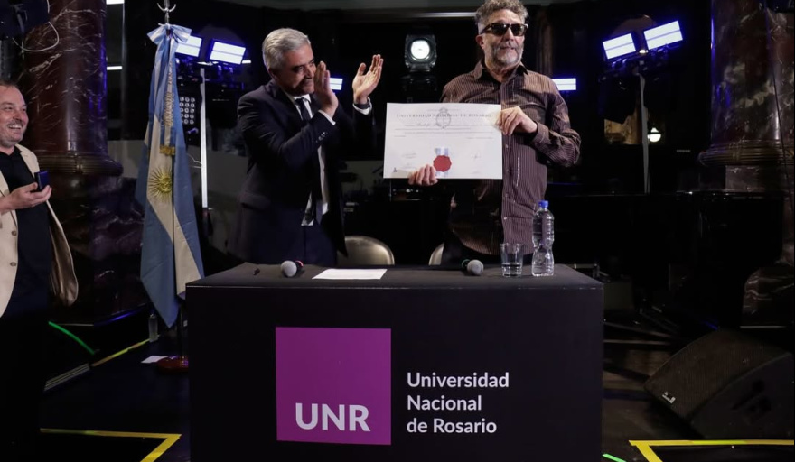 En una noche cargada de emoción, música y homenajes, Rodolfo “Fito” Páez recibió el título de Doctor Honoris Causa de la Universidad Nacional de Rosario (UNR), la distinción más alta que otorga la institución. El Espacio Cultural Universitario (ECU) estuvo colmado por una multitud que ovacionó al músico rosarino, quien dedicó el reconocimiento a sus padres y, especialmente, a su tía Charito. Allí, reivindicó la expresión como rasgo fundamental de la condición humana y aseguró: “No van a hacer un Spinetta o una Liliana Herrero por IA”.