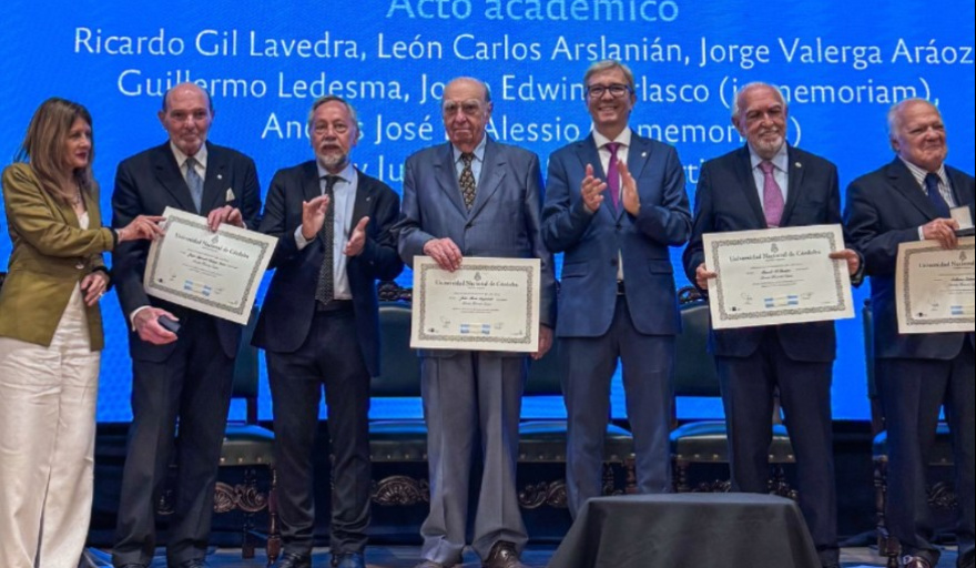 La Universidad Nacional de Córdoba (UNC) entregó los títulos de Doctores Honoris Causa a los magistrados que integraron el Tribunal del Juicio a las Juntas Militares y al expresidente uruguayo Julio María Sanguinetti. En el mismo acto se otorgó el reconocimiento de Visitante Distinguido a Sergio Bitar, exministro de Estado chileno. La ceremonia se realizó en el Centro Cultural de la UNC con presencia de autoridades académicas, referentes institucionales y organismos de derechos humanos.